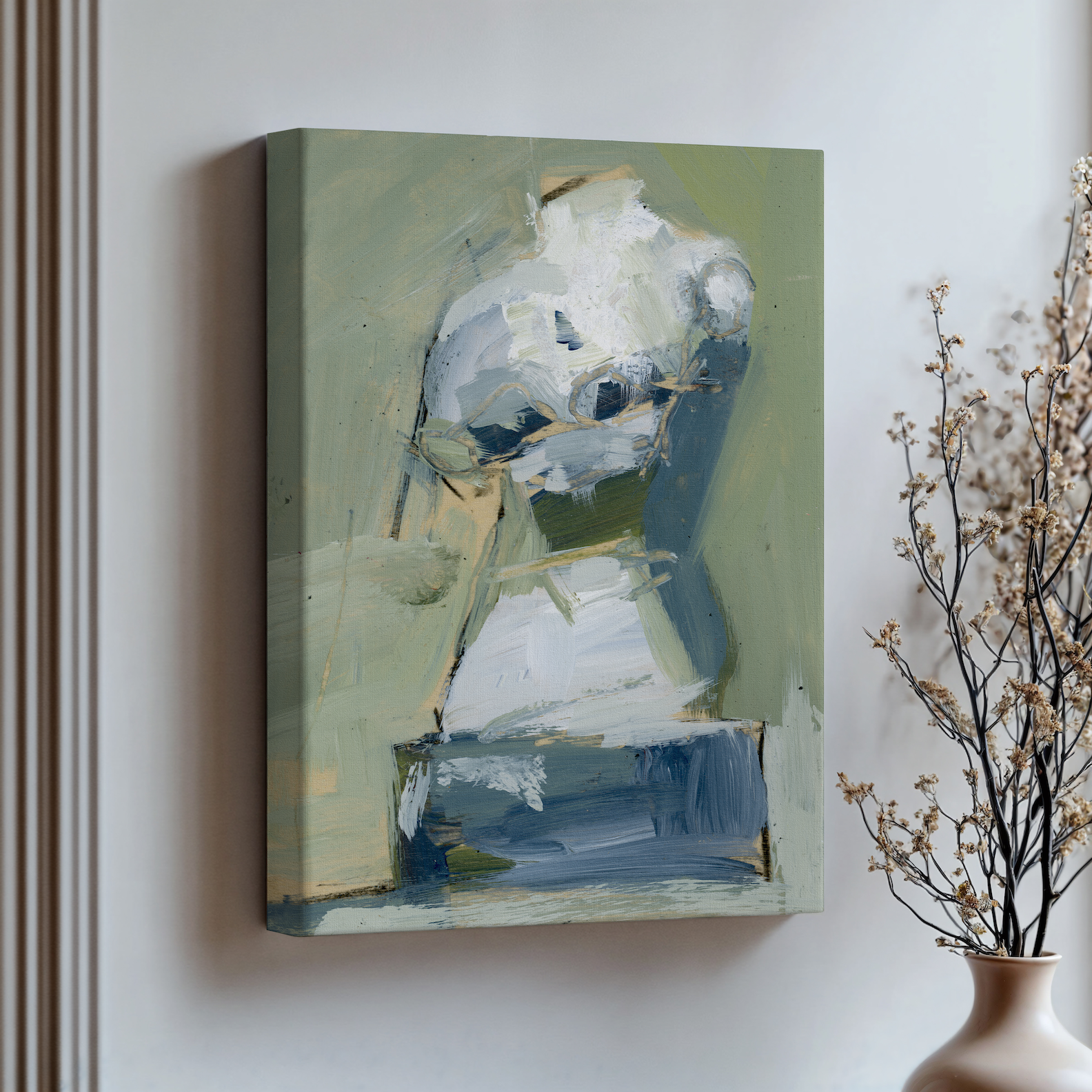 A serene and high-energy standout from the Donna Weathers Abstract Figure Collection, Blue Green Venus reimagines a classical silhouette through a contemporary lens. This limited edition canvas print captures the rhythmic movement and organic beauty of the form, balancing a sense of "quiet power" with expressive, layered abstraction. The composition is defined by a sophisticated, cool-toned palette of slate blues, soft mints, and sage greens, beautifully grounded by luminous white highlights and deep indigo shadows that create a sense of depth and modern sophistication.