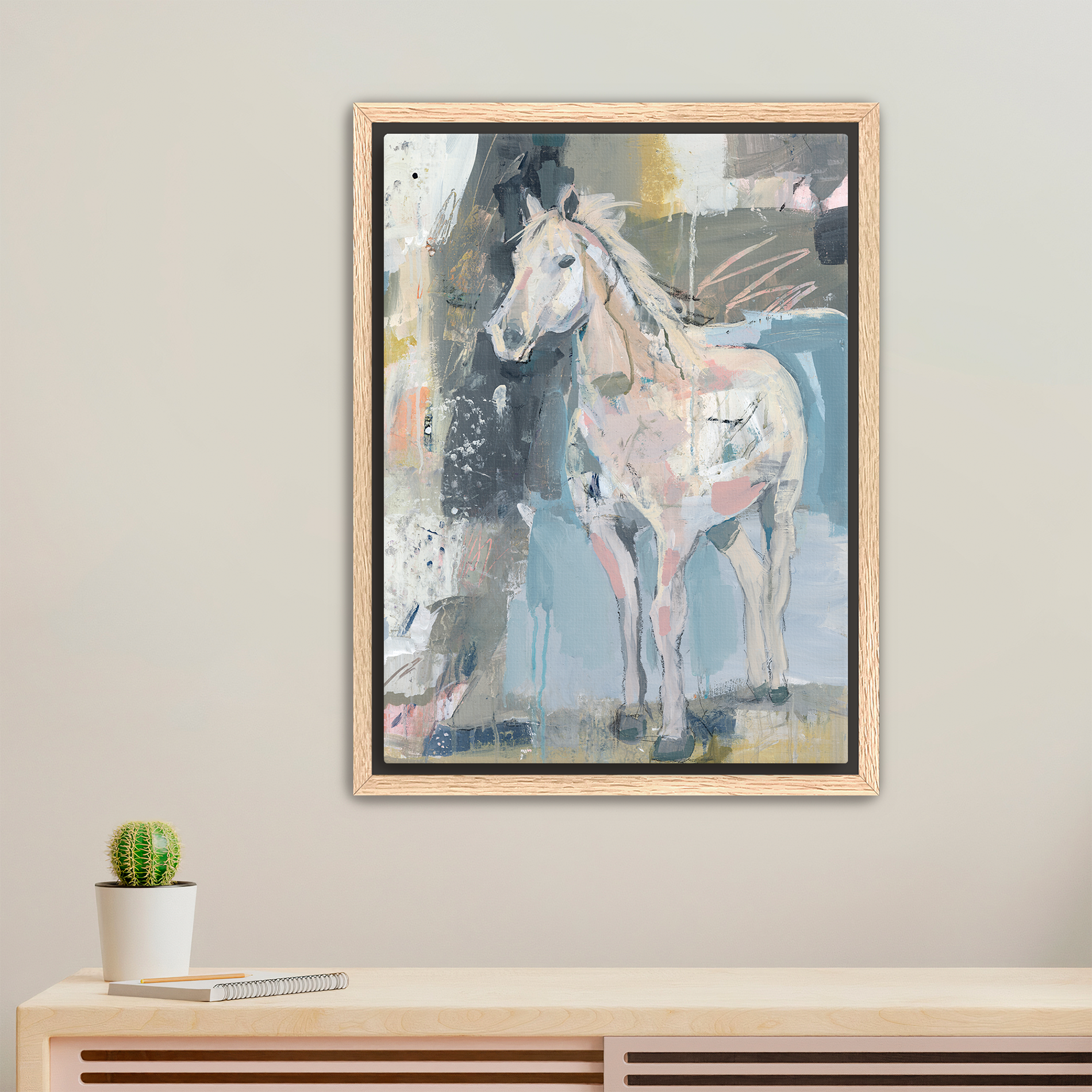 Solid wood floater frame. It comes in oak, black, white, and gold to complement any image style.