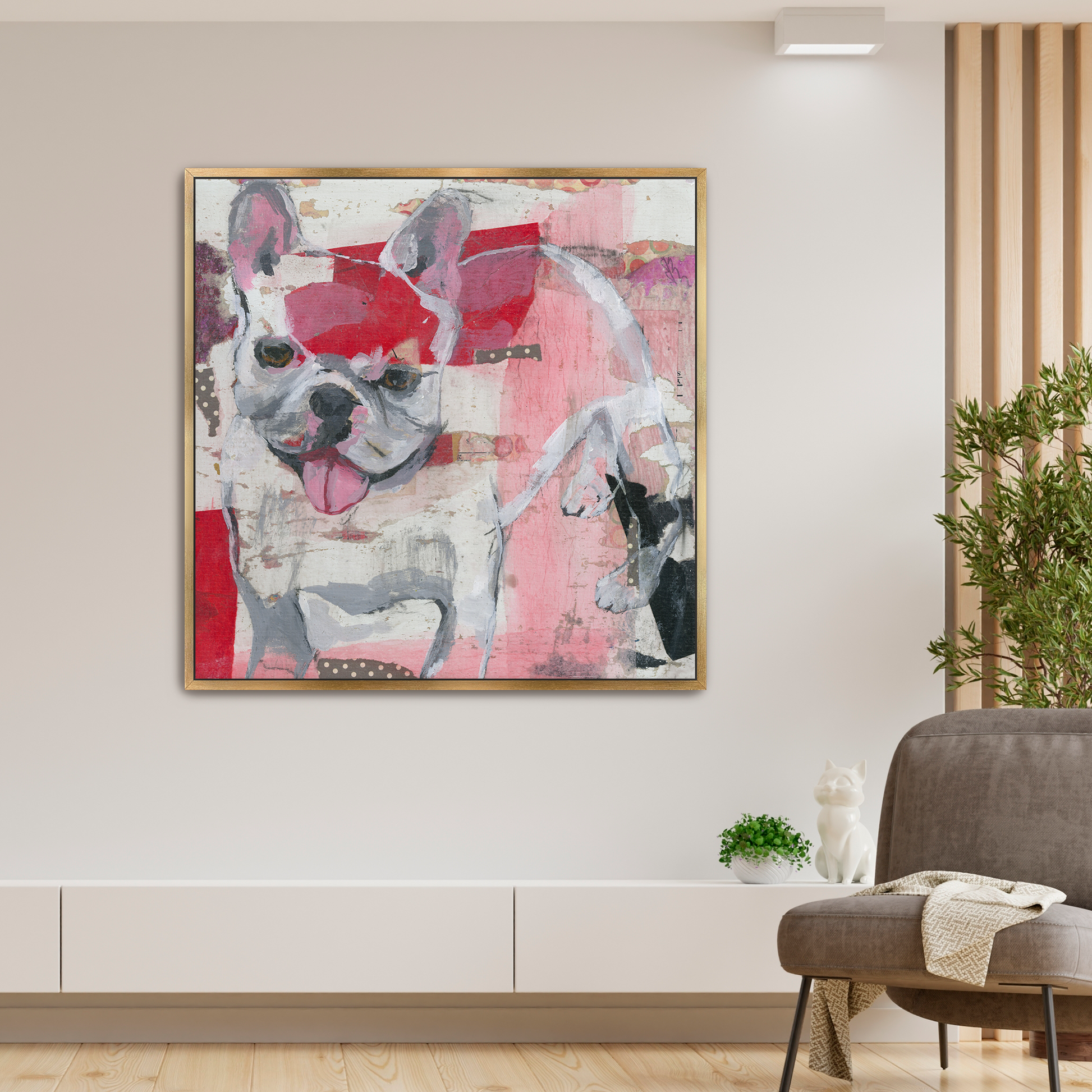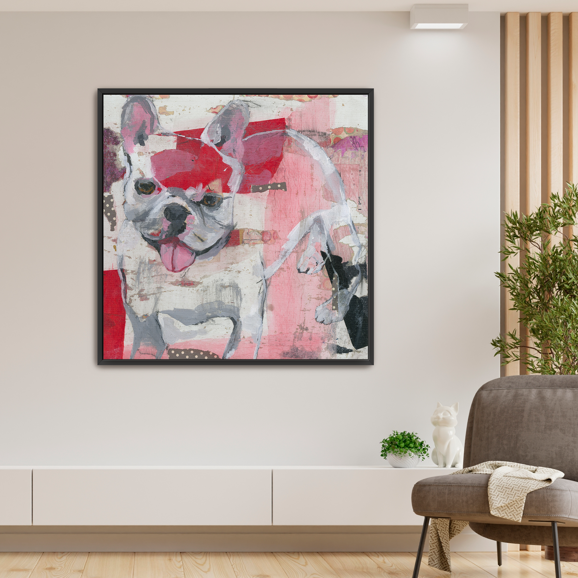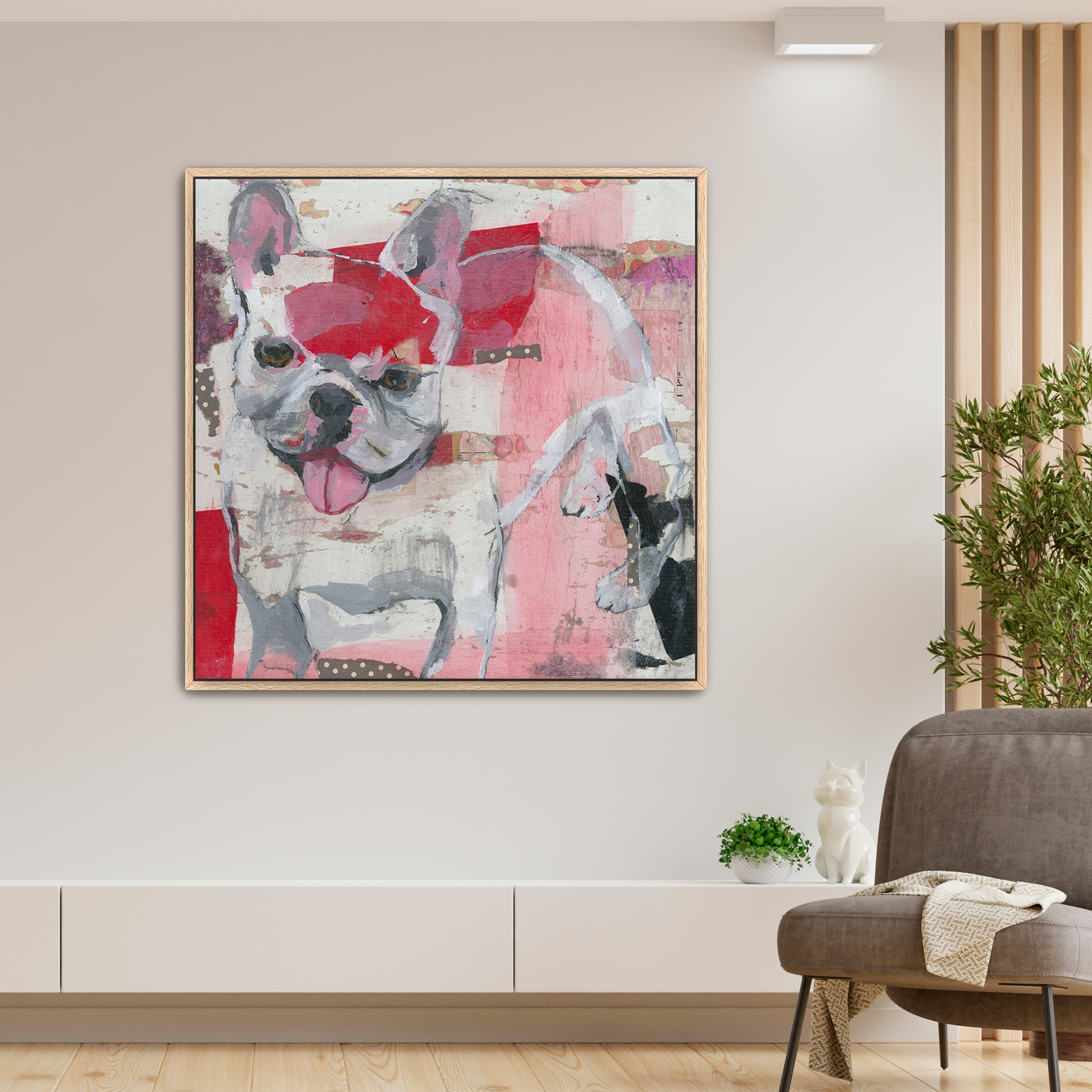 Solid wood floater frame. It comes in oak, black, white, and gold to complement any image style.