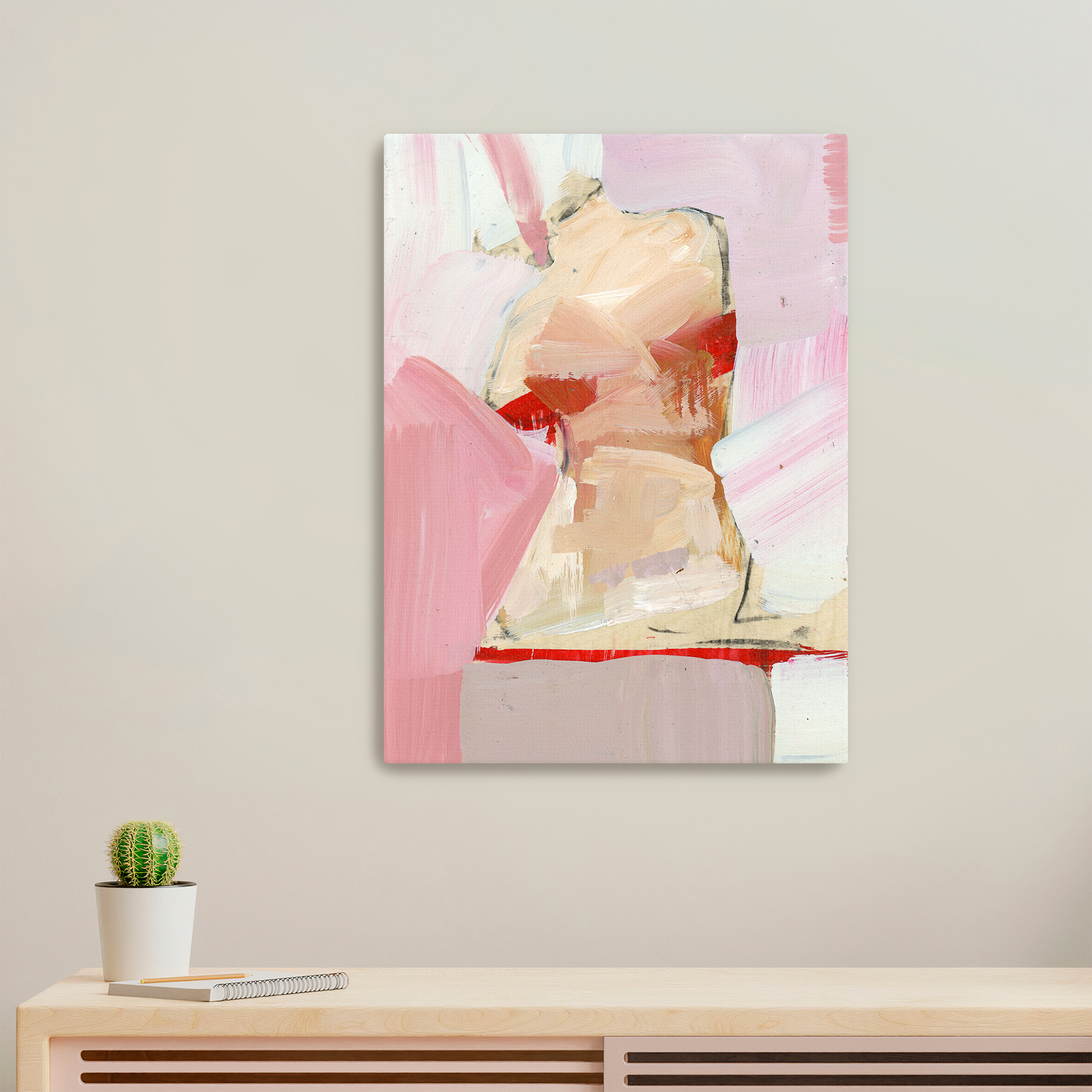 The Clarity of White Aluminum To capture the rich, "scumbled" textures and the complex layering of this piece, I have selected a white-base aluminum substrate. This ensures the varying depths of pink, warm sandy accents, and subtle charcoal under-drawings are rendered with 100% accuracy. The metal substrate preserves the tactile, impasto-like feel of the original brushwork while providing a luminous, contemporary finish that interacts beautifully with ambient light.