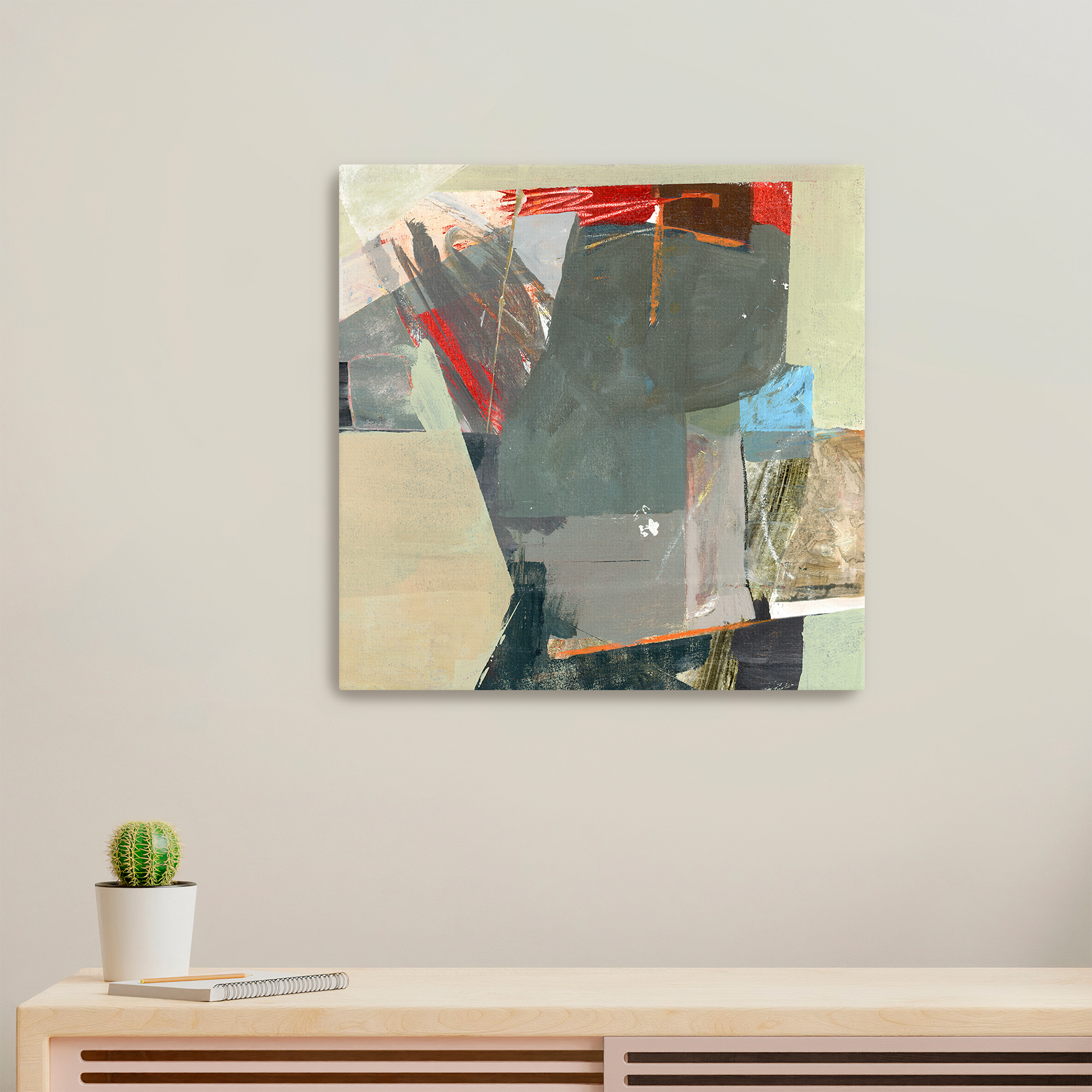 The Clarity of White Aluminum To capture the gritty textures and complex layering of this piece, I have selected a white-base aluminum substrate. This ensures the muted neutrals and sharp pops of color are rendered with 100% accuracy, maintaining the spatial depth and painterly detail of the original mixed-media work.